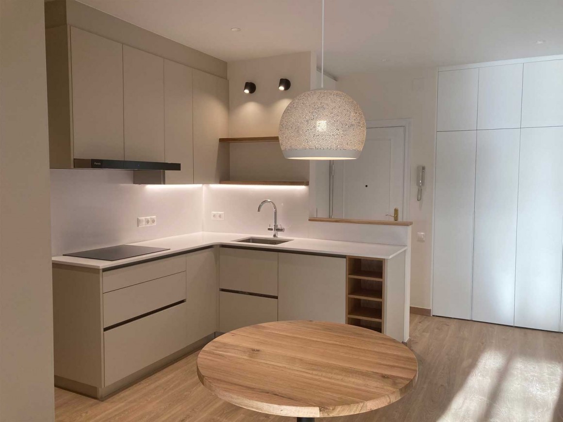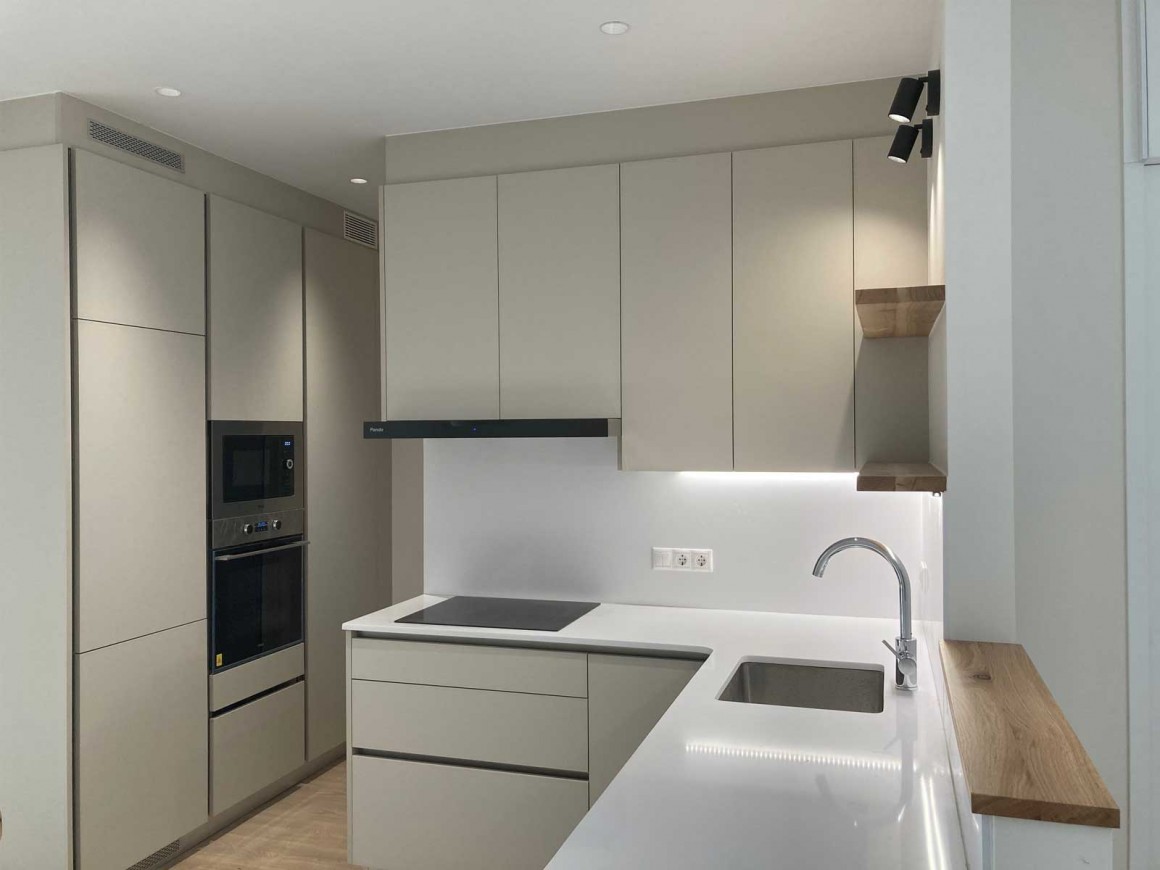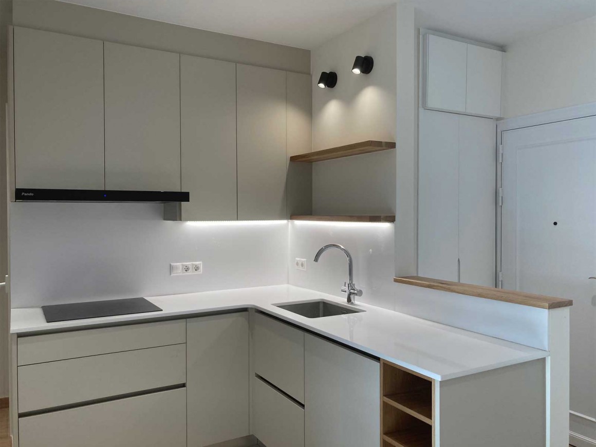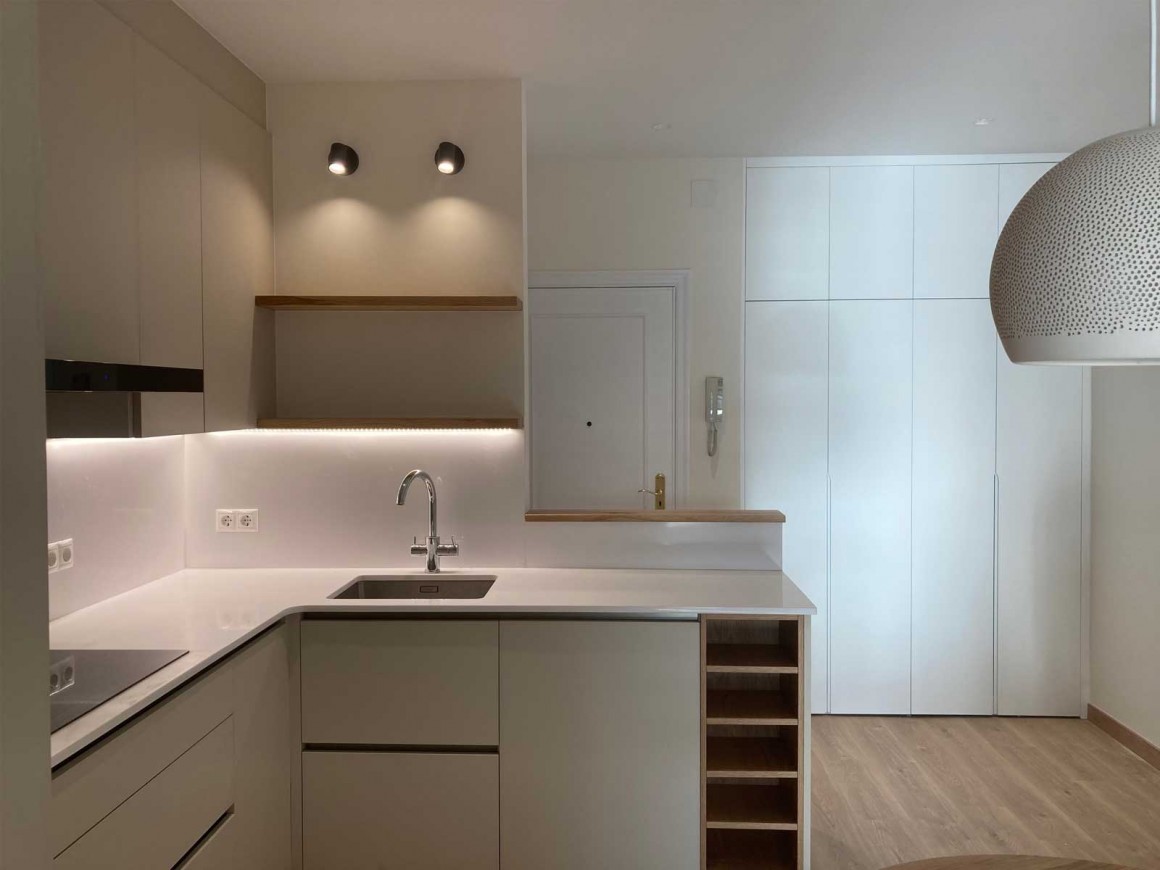 / Laminado Cashemir con estantes de madera de roble
