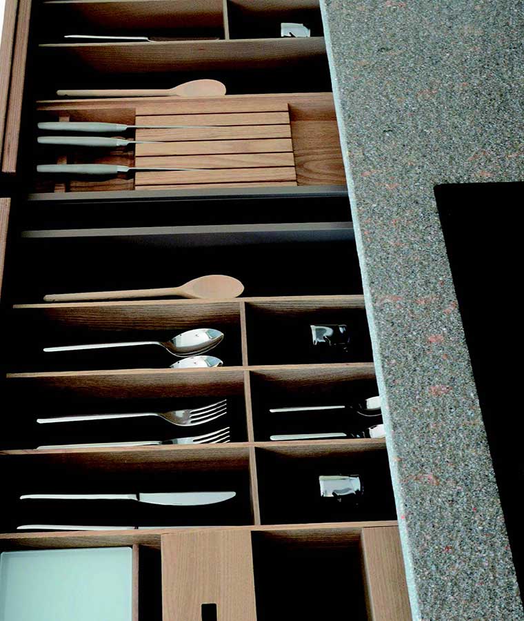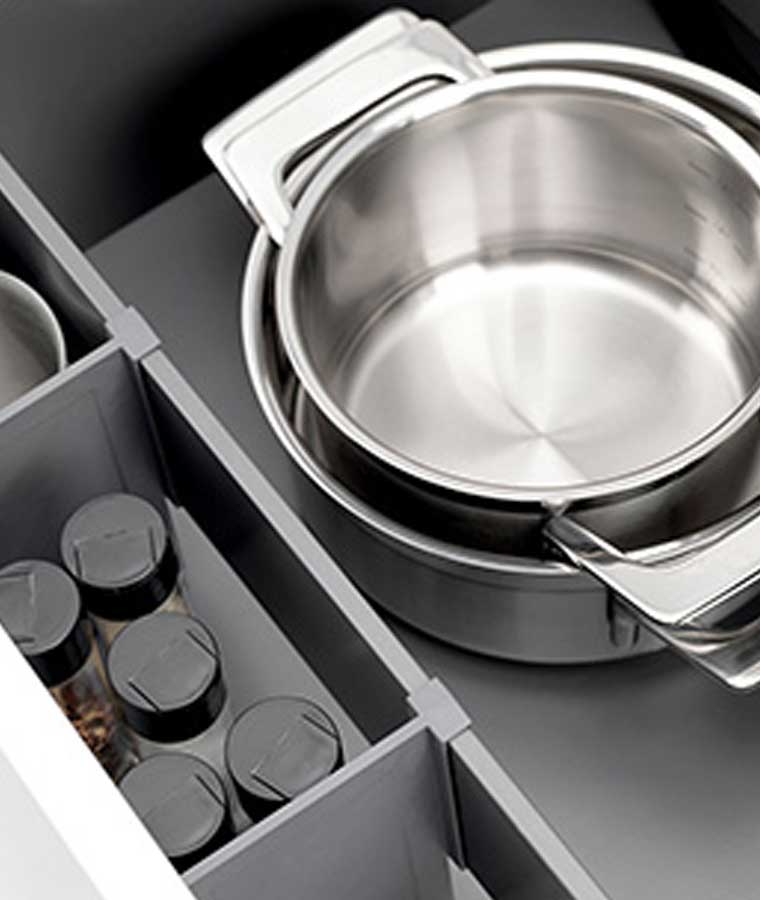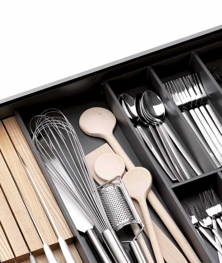 cuberters, portaganivets, especiers, taules de tall, recipients, caixes de fusta, platers, organitzadors d’olles i paelles.